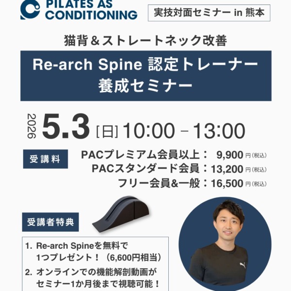 同日の9:30~12:30に同じ会場で、「Re-arch Spine 認定トレーナー養成セミナー」を開催しますので、併せてご参加をお待ちしております!