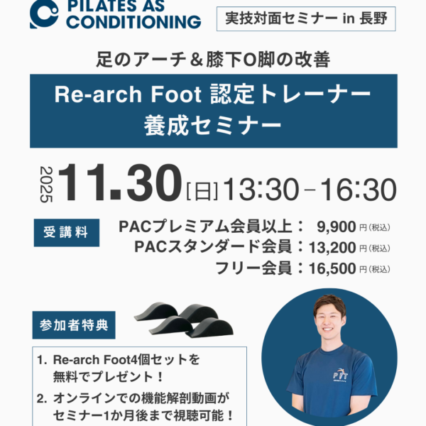 1Dayセミナー 2025.09.02 11/29(土)「Re-arch Foot 認定トレーナー養成セミナー」in 東京 Re-arch Foot 認定トレーナー養成セミナー:足のアーチ&膝下O脚の改善、下肢の機... 77