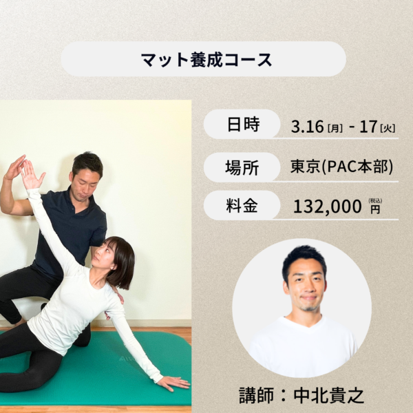 養成セミナー 2025.10.23 大阪(本町)開催:1月9日(金)、1月10日(土)マット養成コース 【2025年6月より養成コースをブラッシュアップ】 Pilates as Conditio... 10