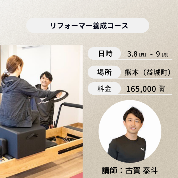 養成セミナー 2025.10.23 広島開催:3月20日(金祝)、3月21日(土)リフォーマー養成コース 【2025年6月より養成コースをブラッシュアップ】 Pilates as Conditio... 4