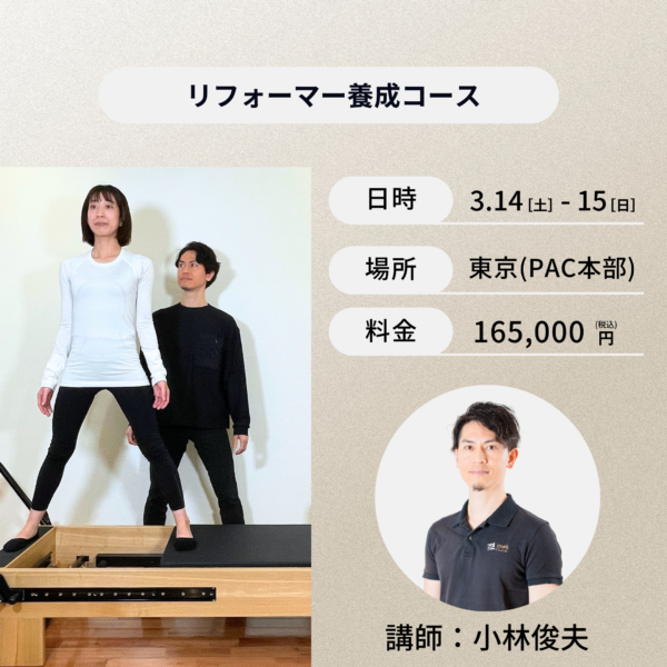 養成セミナー 2025.10.23 東京開催:3月14日(土)、3月15日(日)リフォーマー養成コース 【2025年6月より養成コースをブラッシュアップ】 Pilates as Conditio... 4