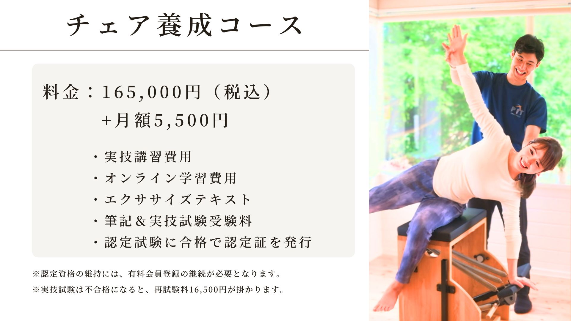 チェア養成コース受講料